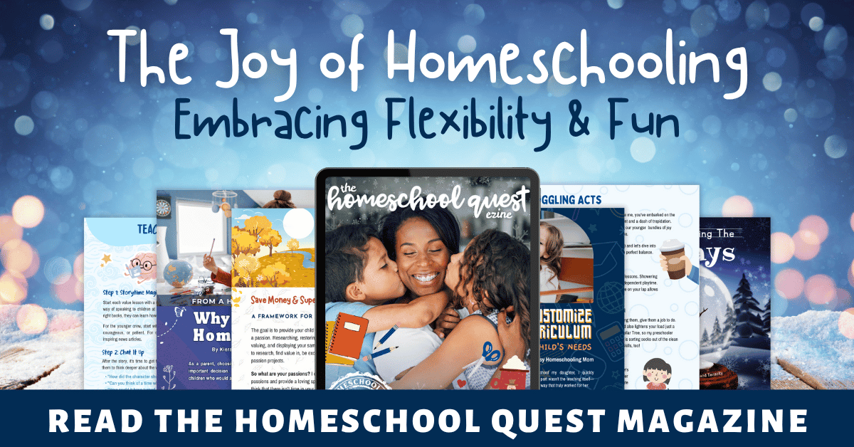The Homeschool Quest magazine helps you homeschool with practical tips, inspiring stories, and resources that adapt to your family’s rhythm.